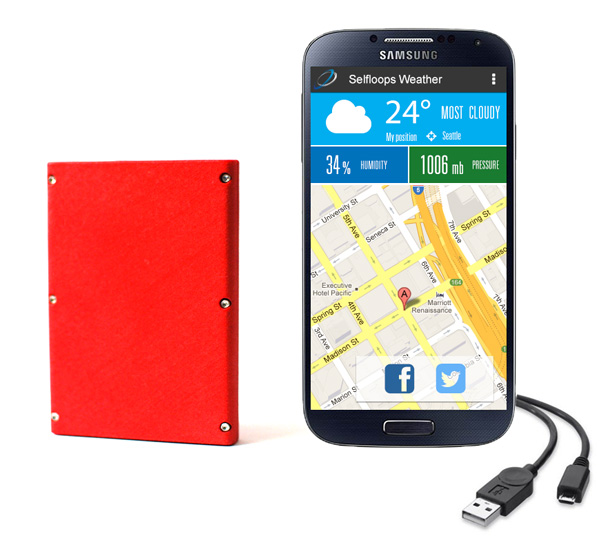 An app-accessory that charges your smartphone and at the same time tells you the humidity, temperature and barometric pressure around you.