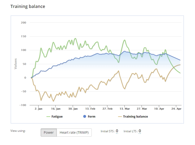 Resting too much is not good but it is not good to training too much either. With the Fitness and Freshness graph you will be able to reach the perfect form by balancing training and resting periods.