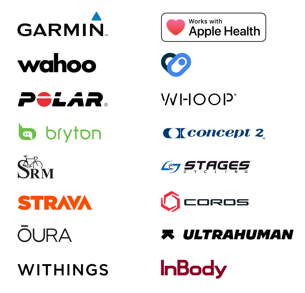 - Garmin: Seamlessly sync data from Garmin watches or bike computers.