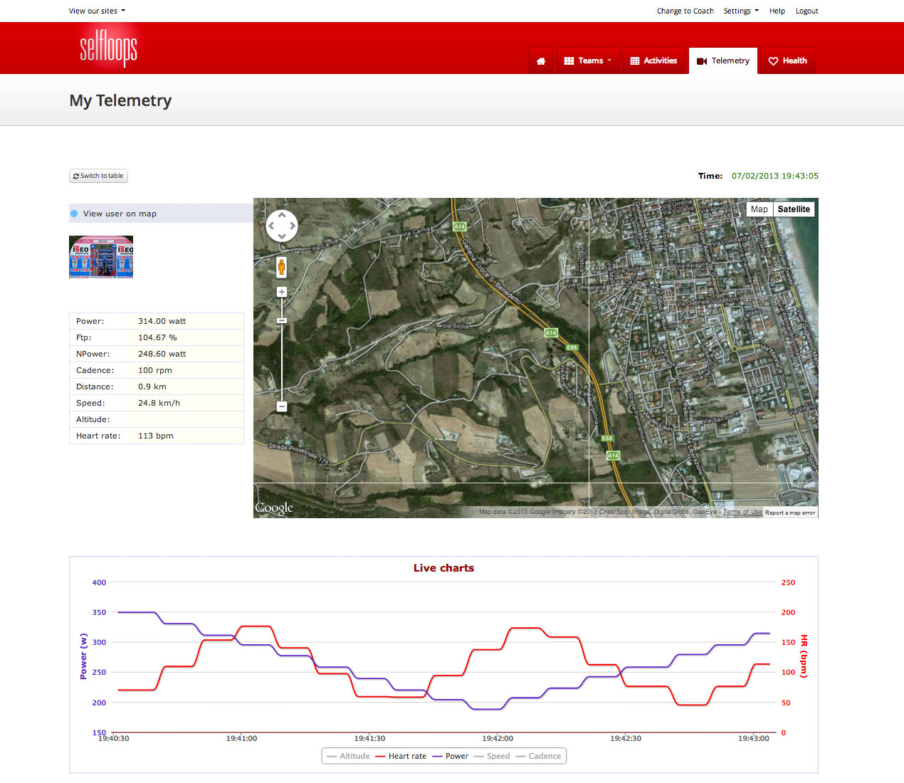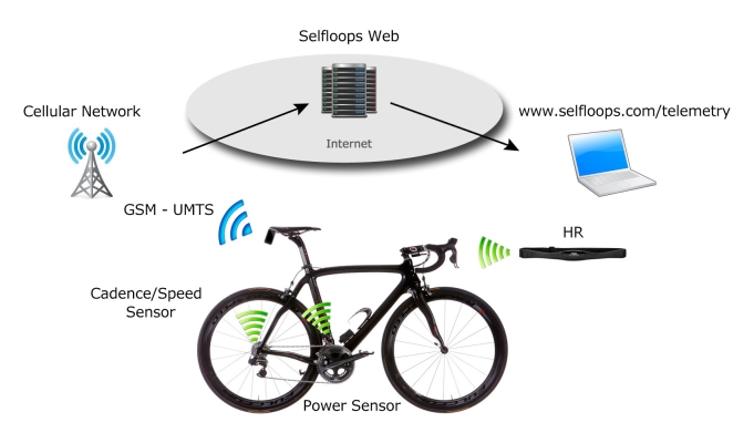You can use the telemetry also indoor, in spinning classes, treadmills or velodromes, it just works. Data are streamed over the Internet using a cellular network data connection or WiFi, you choose.