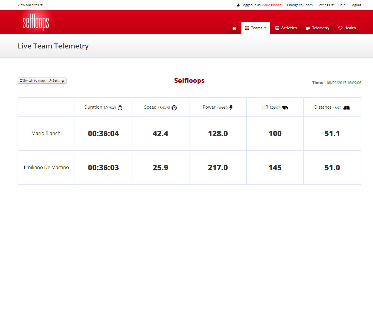 You can monitor the performance of an athlete but also evaluate the activities of a group or a team. If you are a coach or a event manager, you can select the people to follow during trainings or competitions.